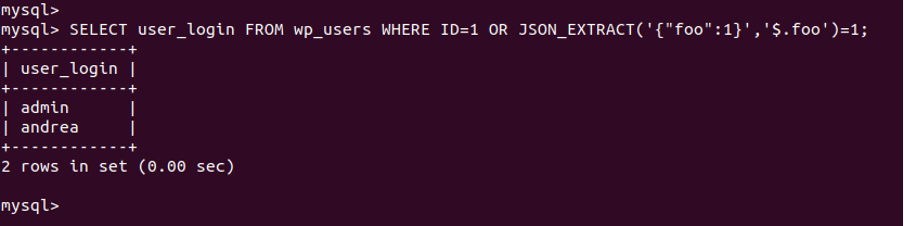 1 OR JSON_EXTRACT('{"foo":1}','$.foo')=1